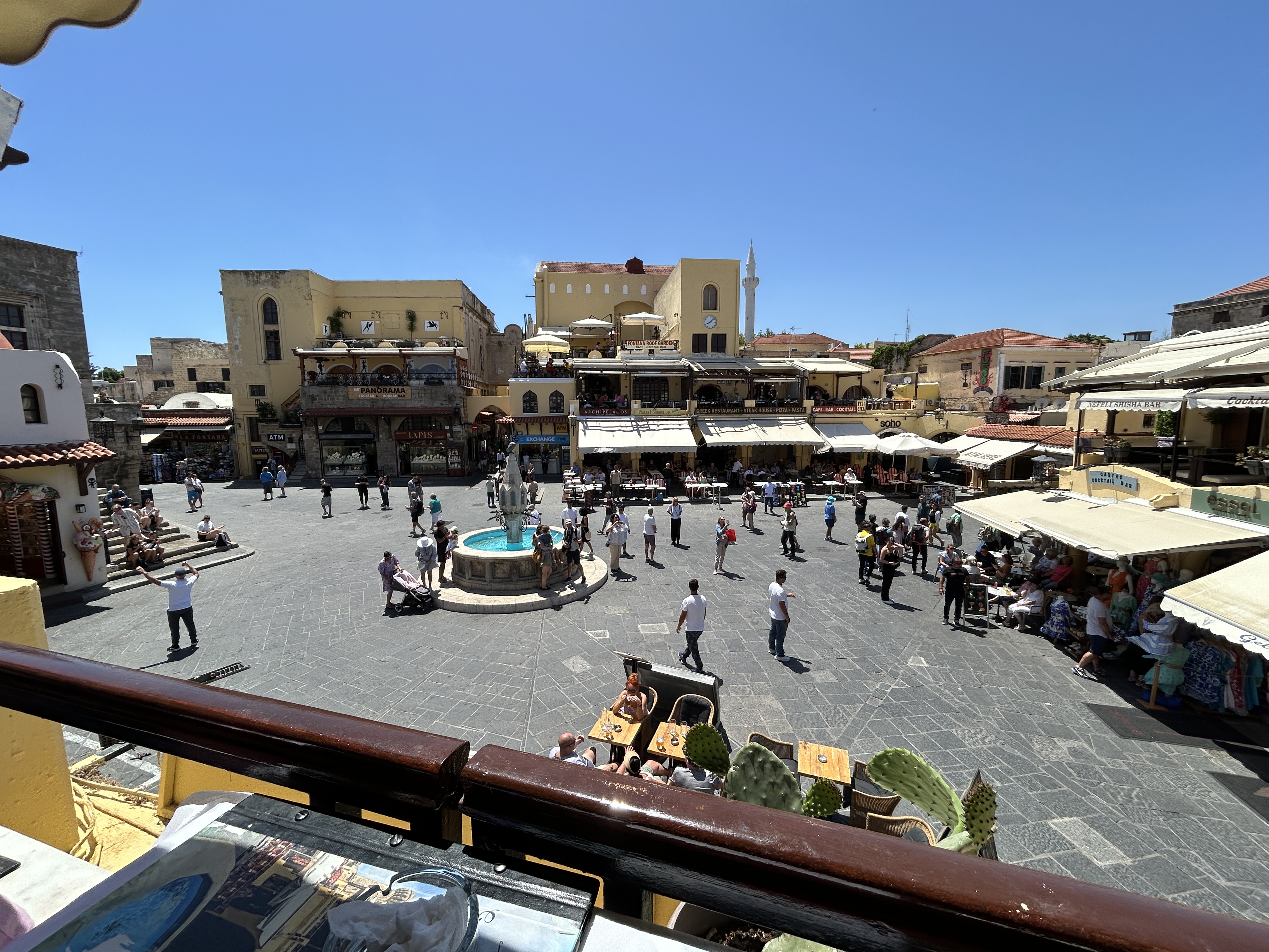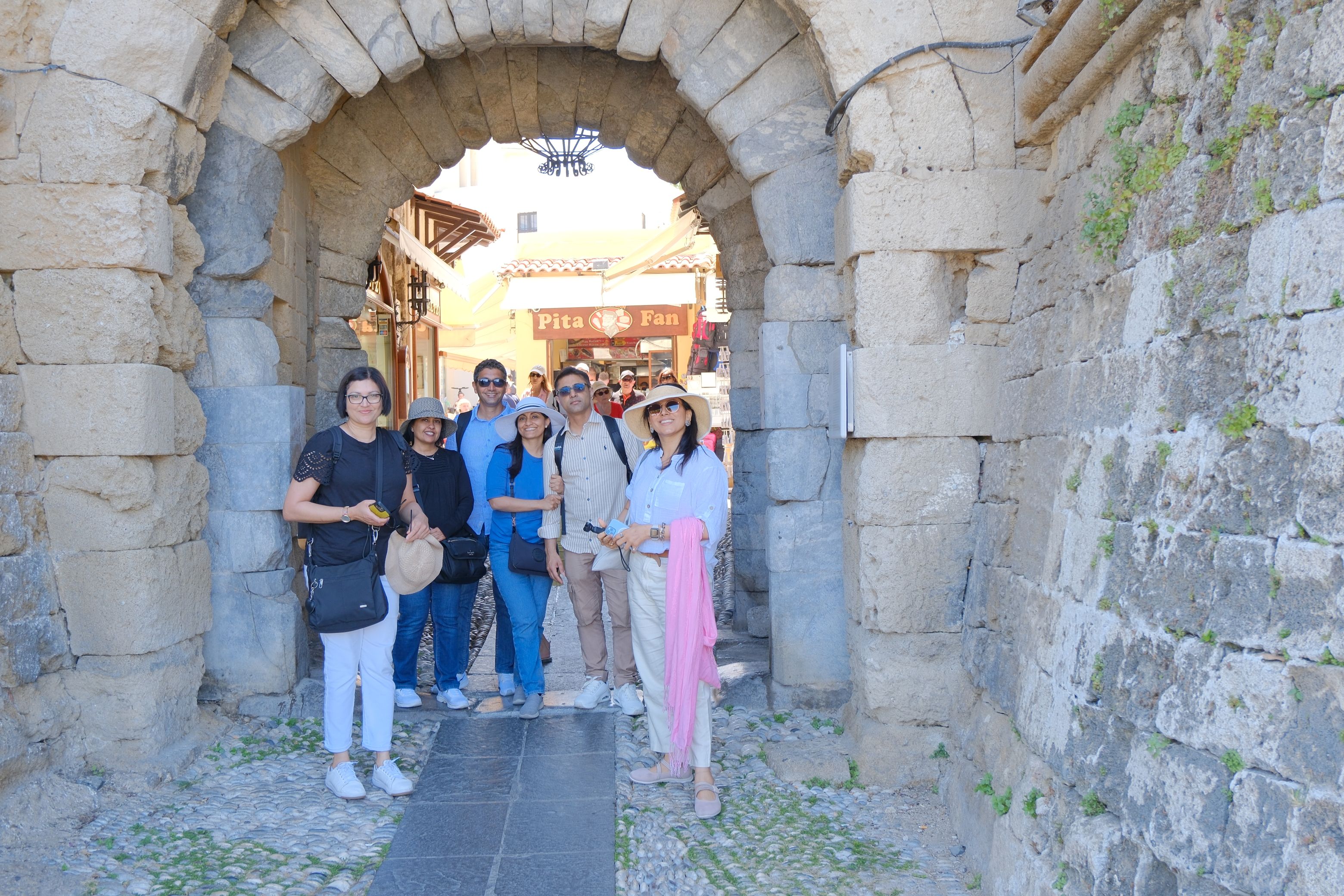 Time to grab a bite in the central markets of Rhodes. At the Hippocrates Square, a bustling area with tons on Shops, food outlets and Rooftop bars. Found one with enough space for the 12. Amazing food , unfortunately no pics as we were all too HANGRY and could not wait ;).