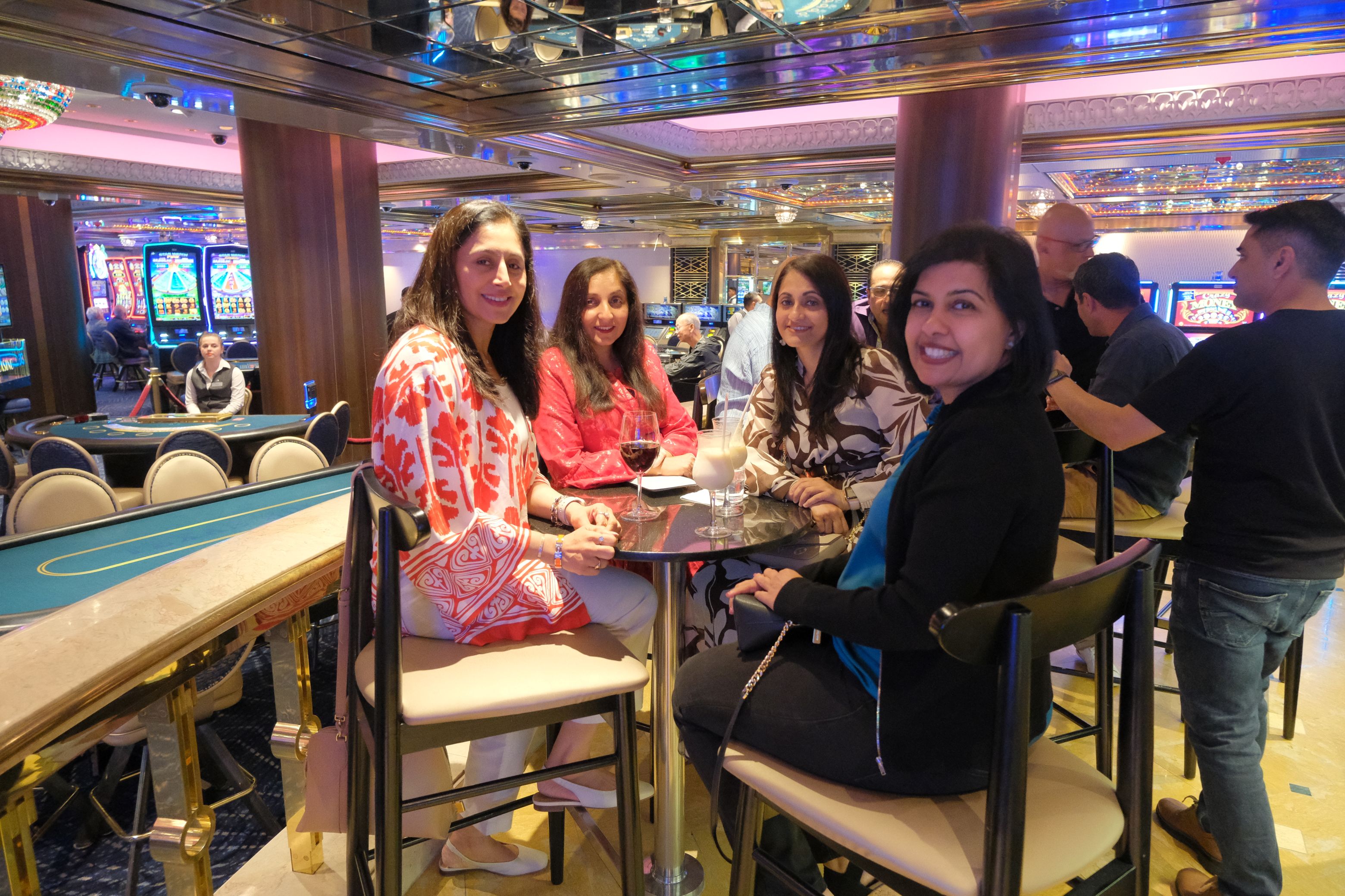 On the ship, the 4 of us got together at the high tea after a quick refresh. We stayed there for a few hours just chatting, laughing as others joined in as they got back on the ship. Afternoon high tea and yarns continued for a while. During the course of the cruise, the high tea was one area where everyone congregated and ran into each other…. you could get there at any time in high tea and someone from the group would be there! High tea done, all back to our cabins for a siesta, plan was to meetup later around 6ish for evening drinks. About 40 mins later out whatsapp groups starts to ping…. one by one, as we all woke up from our siesta we started asking where to meet and what time. Jaynesh/Seema indicated they were going to the Martini Bar – so that was the place for the evening.