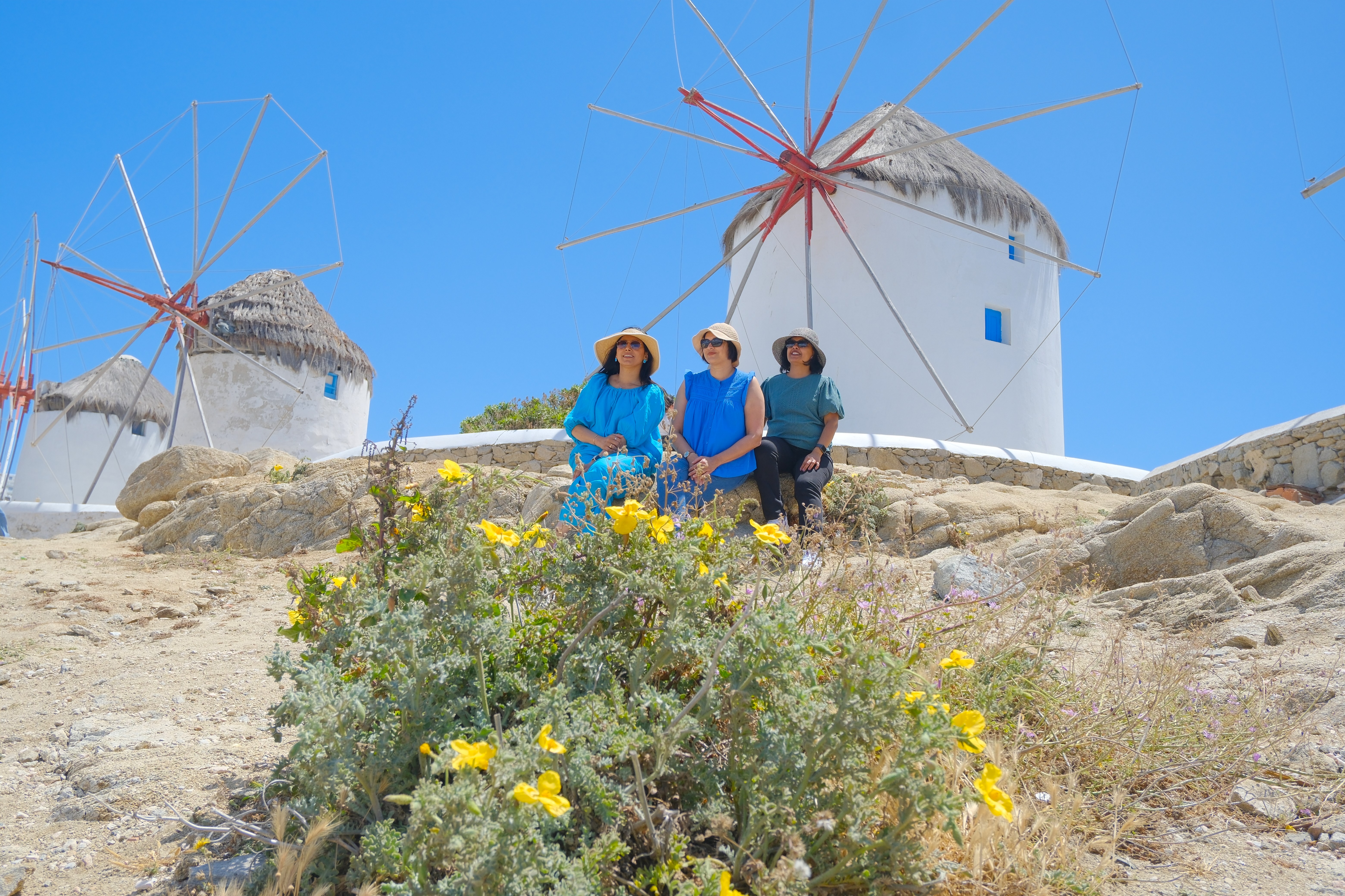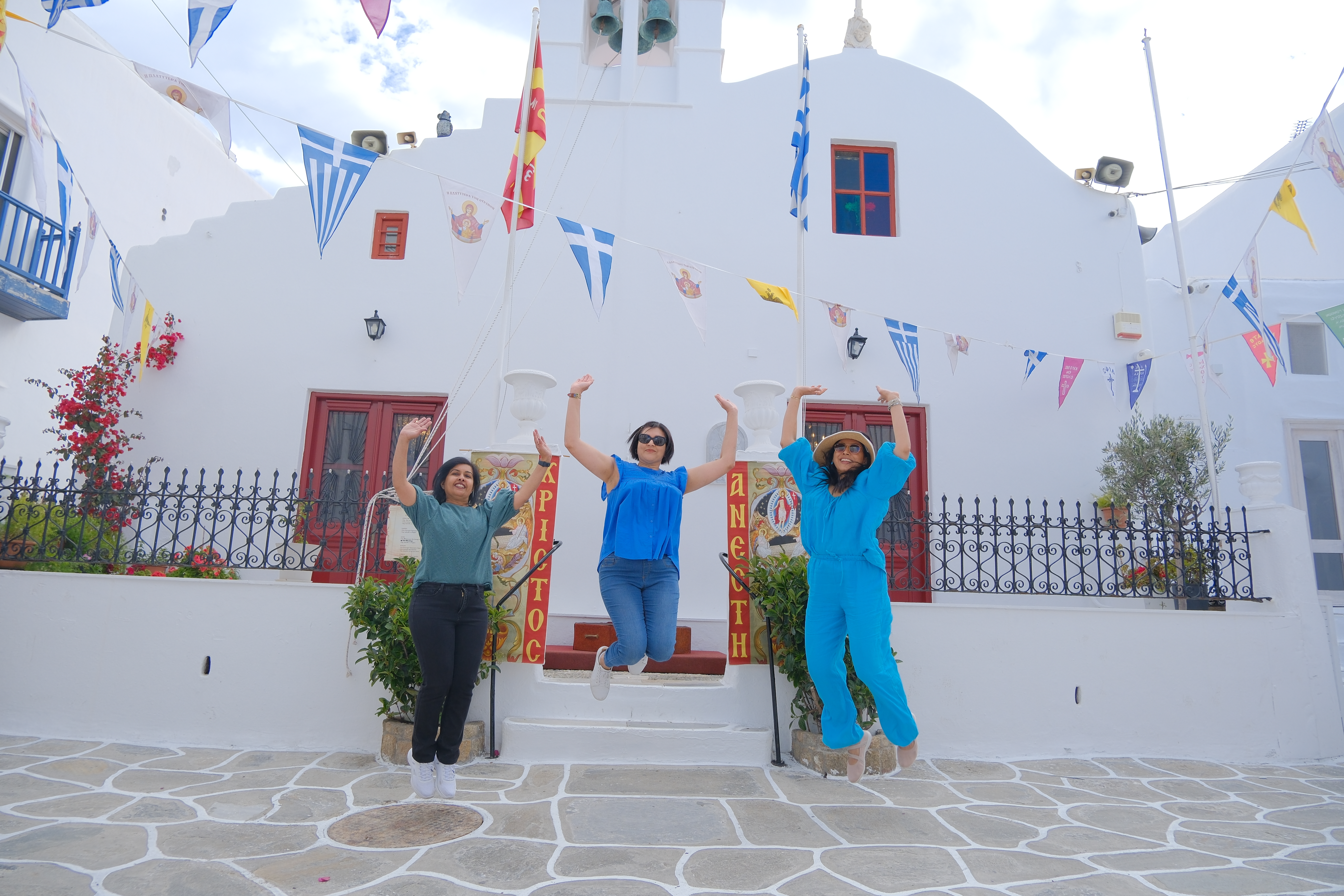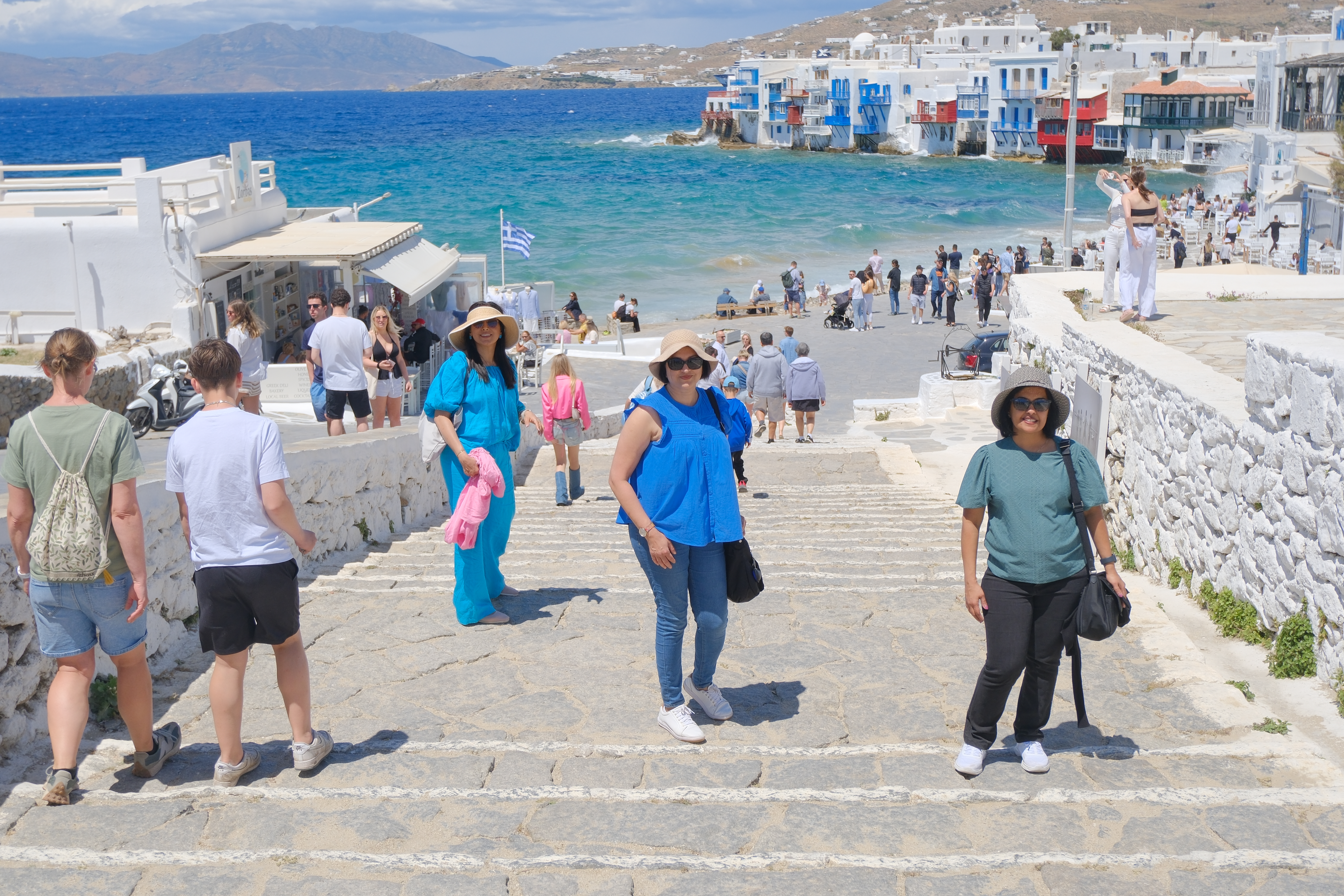 Perfect weather – clear blue skies and great weather. Again self exploration rather than a tour. Bus took us from the Cruise Port to a drop off zone near the town. From there Doc, PCB and Kosh headed off on the Quad bikes to explore the island. Me, Cheeky and Jaynesh decided to go the town on foot instead and skip wider island exploration. OMG Mykonos is just so amazingly pretty …. would have loved to stay here overnight , well something for next time. Instead of lots of descriptions and text, the pics would do the job ….