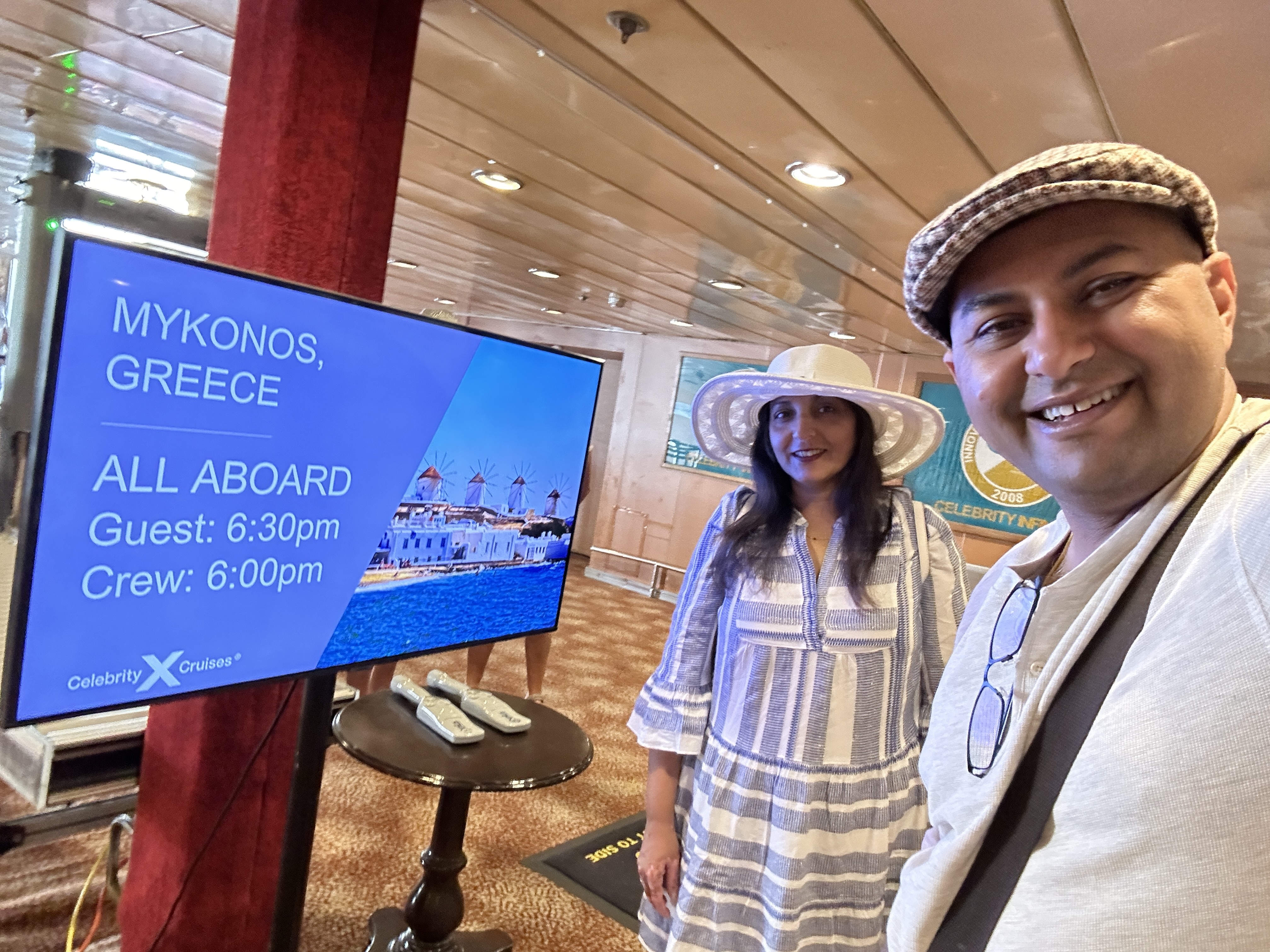 About a 30 min drive to the Cruise terminal. Celebrity cruise does passenger boarding so well. As our vehicle approached, Celebrity team members were there to meet us at our vehicle and providing guidance on which way to go. And they were taking our luggage directly from our vehicle to the ship. This was so good, no need to roll in the bags ourselves. The boarding process was super super efficient, first we were led into an airconditioned tent with blocks for processing passengers. Our block was waiting whilst the earlier arrived passengers were processed. Whilst waiting we were offered cold drinks and cold towels , looked after nicely. Soon enough it was our turn and we were processed and headed to the ship – whole process was super efficient .
