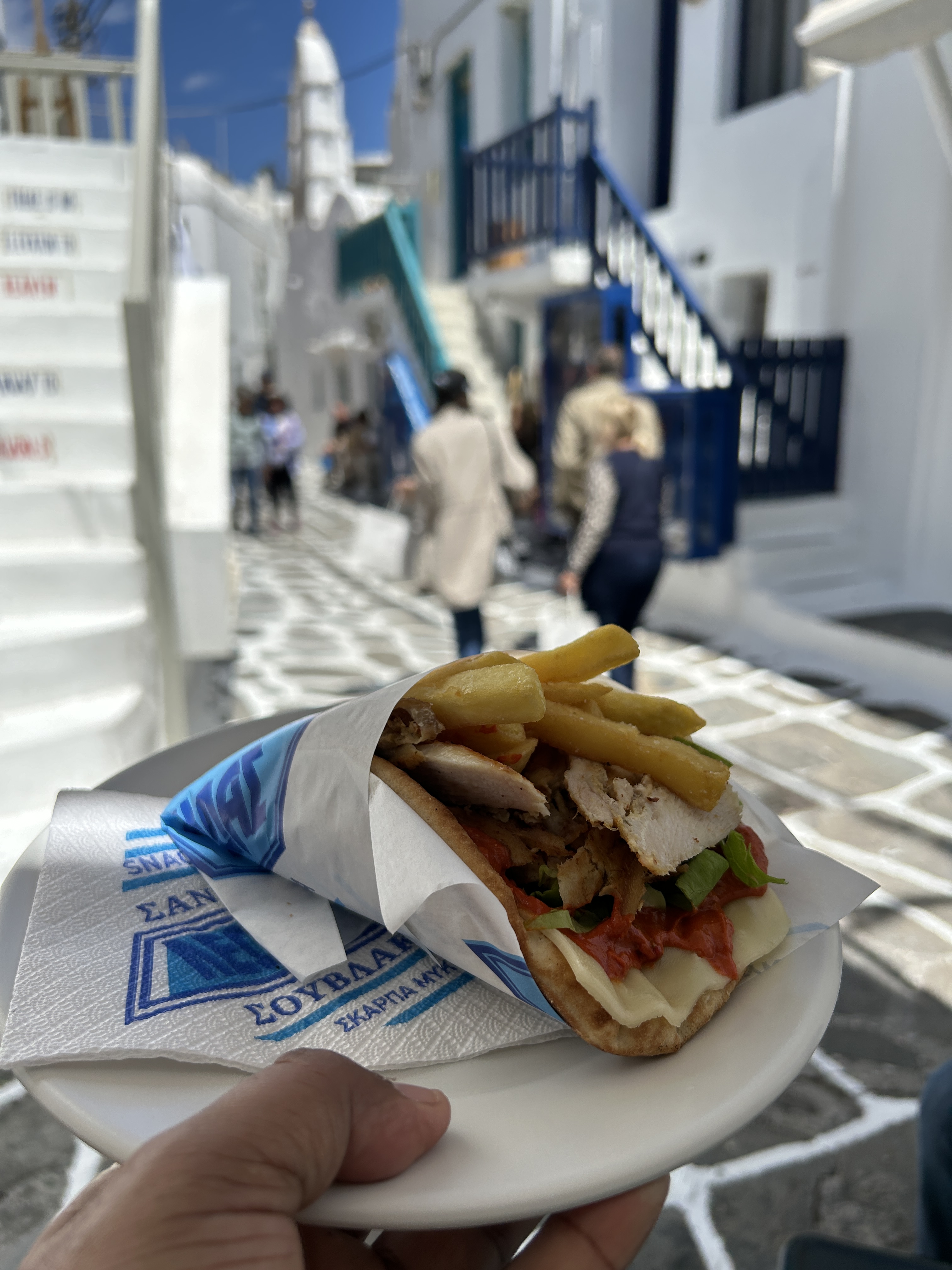 More walking about, headed back to the water side area where everyone had agreed to meet around 12:30pm. Doc & Tina turned up, no one else around…. soon find out via whatsapp the others had grabbed lunch at one of the laneways…works out well as our group was too big, and this made it so much more manageable. 4 of us walked through the array of seaside eateries and settled for a place that seemed to be serving good souvlaki, key thing, got the thumbs up from the ladies :). A nice cold beer, wine, great wraps and Souvlaki…. it was a nice place to just chill and refuel.