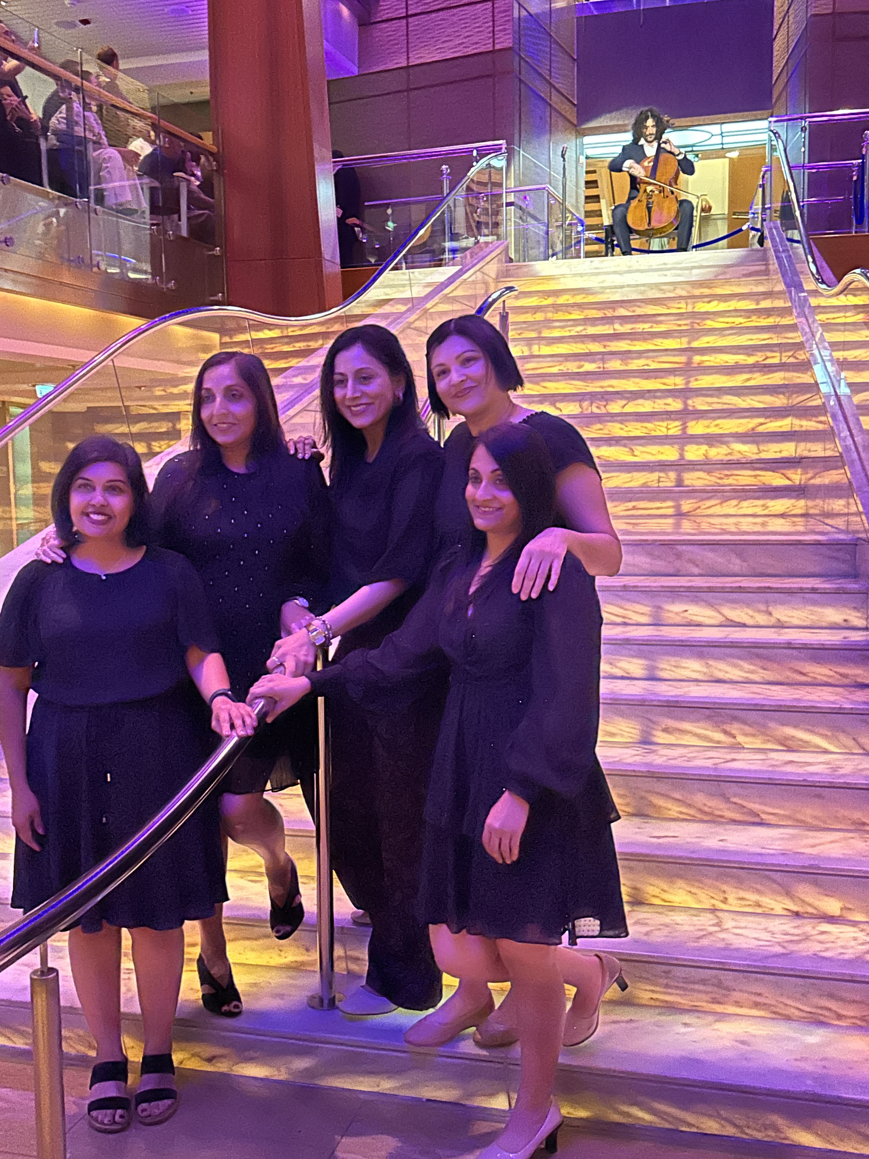 Atrium area with the not so grand staircase was packed, it was the captain’s night or rather formal night …. not so formal for us ;). Good moment for the group pic.