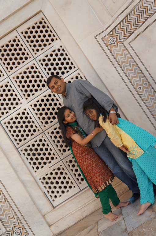 Nita and I were taking in the views of the Taj, however kids were getting restless and wanted to get into the Taj Mahal. Off through the walkways… and taking lots of pics, lots and lots and lots!! Did not hire those crazy photographers this time, tried to copy them and made some of my own unique ones…