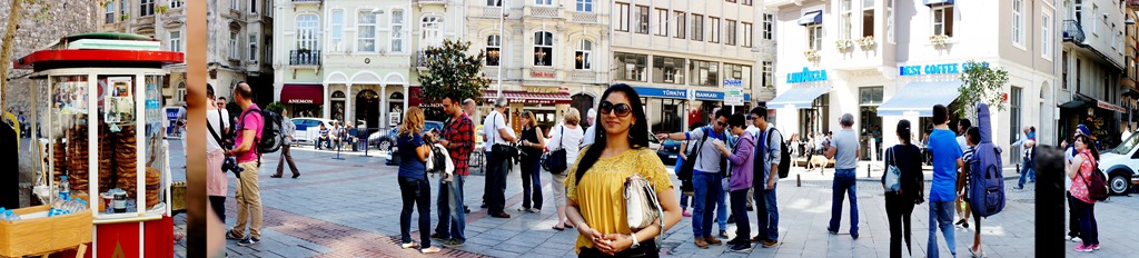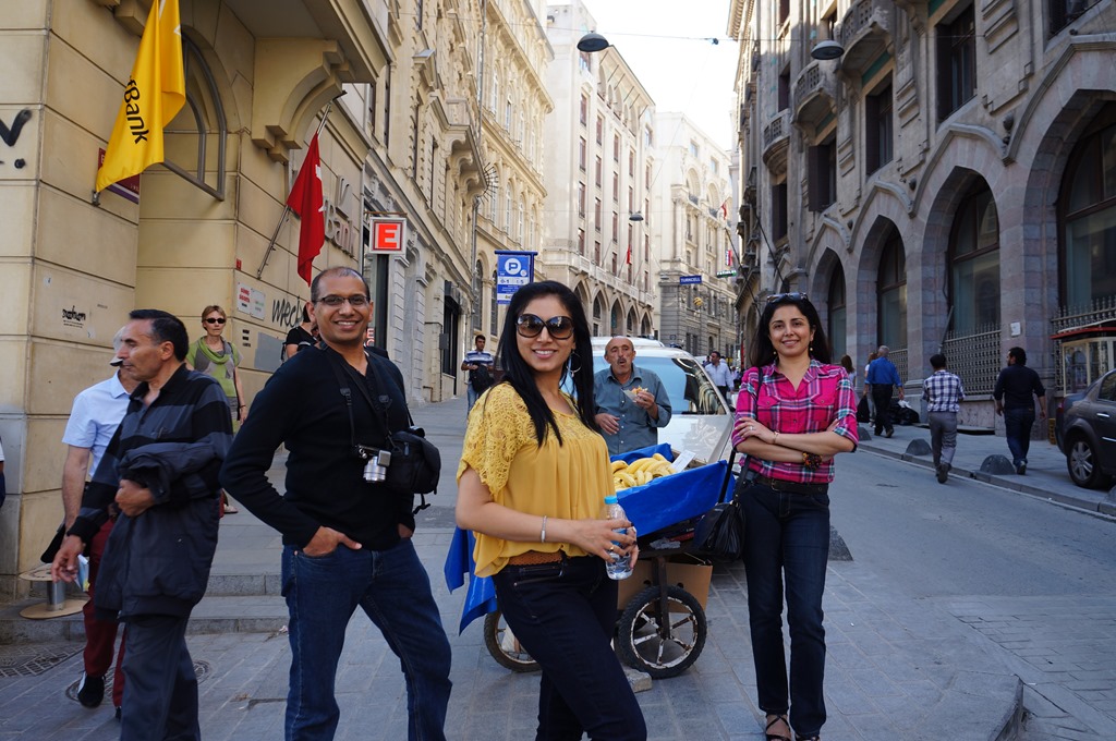 Hotel advised the best place to catch Taxi to Ortakoy was a block away – due to the street being oneway, took that short walk, along the way, Jayesh found a good spot for taking portraits for our lovely ones….. (could never get enough of that!!)