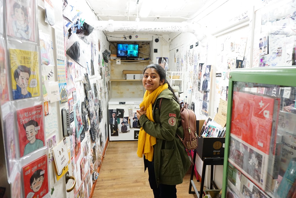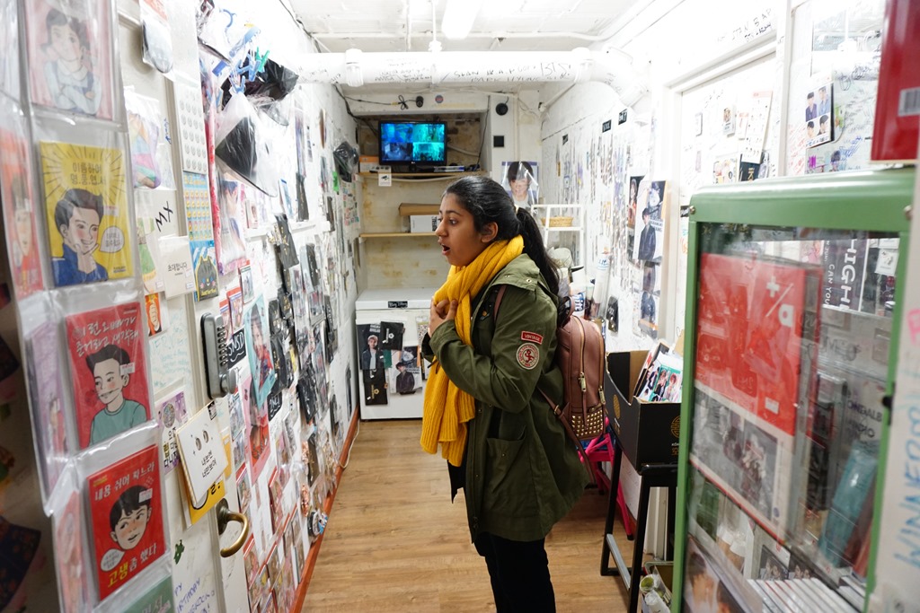 Took the tube to Bond St, than switched to the Central line to get off at the Tottenham Court Road, a few minutes walk and we were at the Seoul Bakery. The place looked like just any small Korean cafe, asking the staff there about K-pop store, and they led us down to the lower level store which was essentially a locked room. They opened the room and left Pooja in there, she was free to go through it all and pick what she wanted! Was super impressed with their trust that fans will not steal!