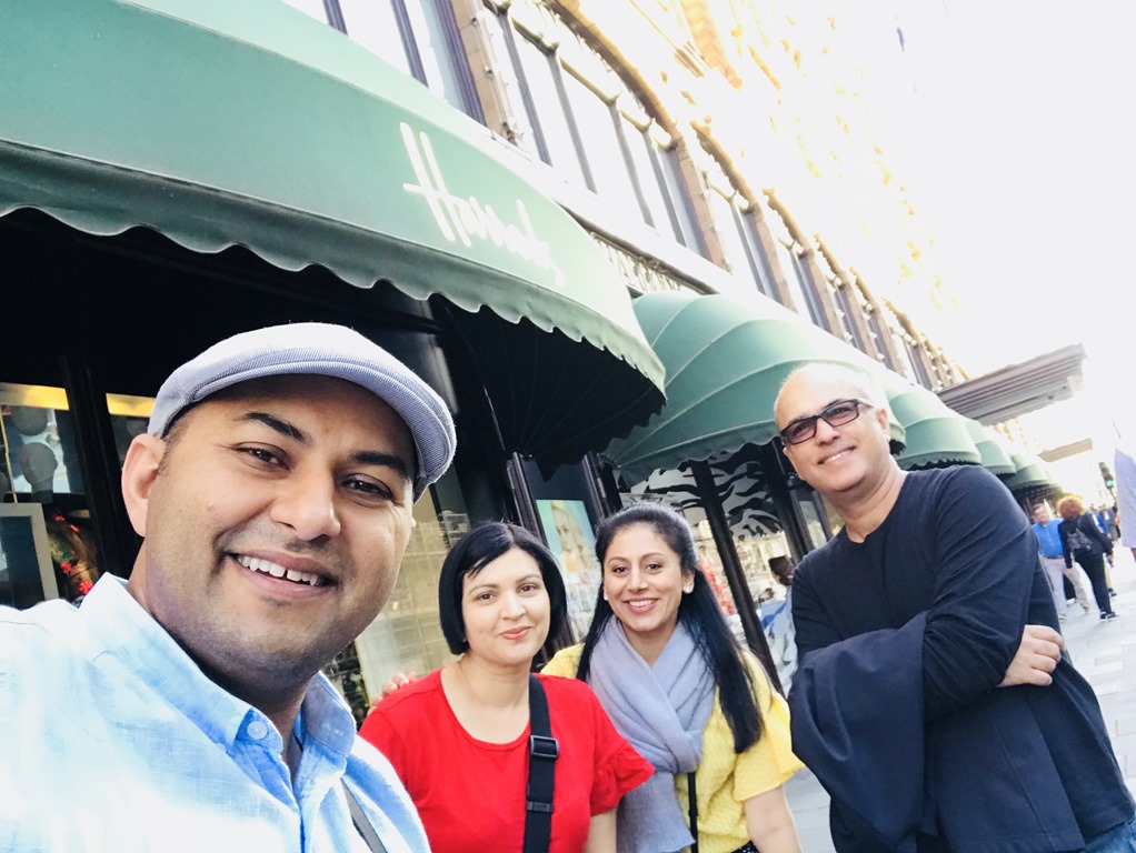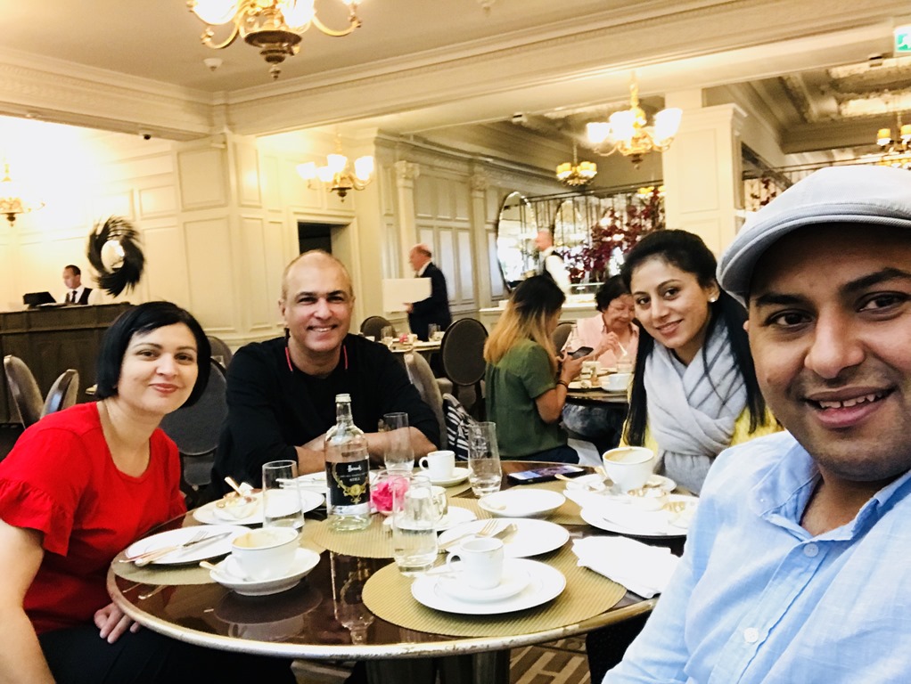 Doc was dining out with his family in London tonight, me and Vikash decided to head out to Harrods for afternoon Tea after dropping kids off at Hotel. Told them to order Room Service!