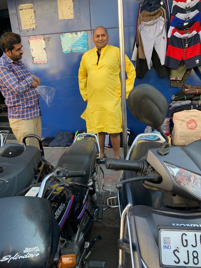 Whilst waiting for our car pickup, noticed a street side vendor selling men’s kurti’s and he had a yellow one. Cost was only 300INR!! Bharti kaki had mentioned something about all being dressed in yellow for one of the days during the wedding – whilst I was not too keen on it previously, at $6 AUD, this was a no brainer. No trial rooms there, simply tried it on the streets and even though the largest size available was slightly tight, decided to buy it and convinced myself of loosing some weight before the wedding – well that is the plan, not sure if I will stick to it though??!