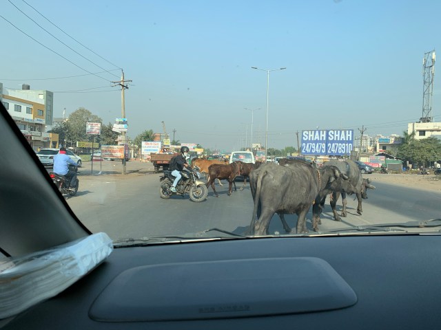Driving to Surat, a normal sight here, Highway is blocked by bulls…