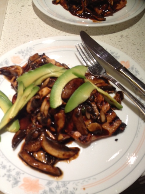 Delicious BBQ Salmon with mushroom and avocado