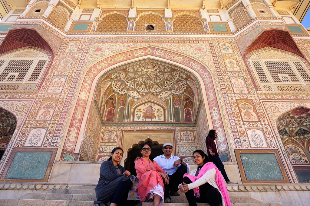 We went inside for darshan, and the same detailed sculptures were on the inside, very nicely decorated.