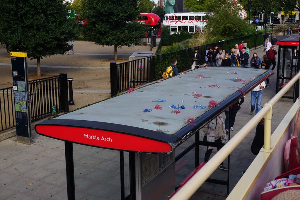 First on the red line Bus to the Marble Arch stop to switch lines to get to our destination.